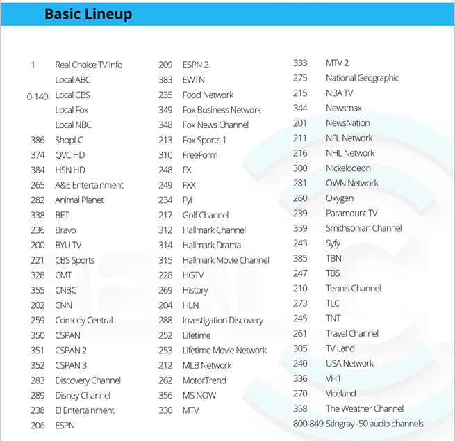 Basic Lineup is only $91.00/mo. after you get $5.00/mo OFF your New Era Broadband Internet Bill