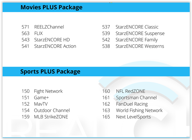 Movies PLUS Package & Sports PLUS Package for only $10.00/mo. more each.