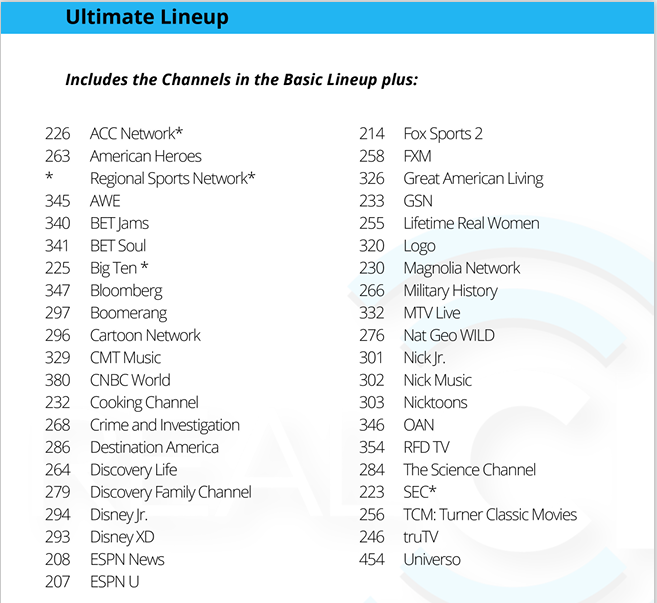 Add the Ultimate Lineup for only $39.00/mo. more!